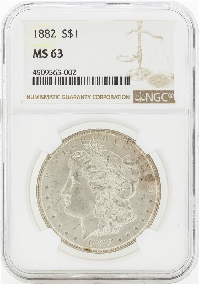 One 1882 MS63 NGC Morgan Silver Dollar NGC Certified.