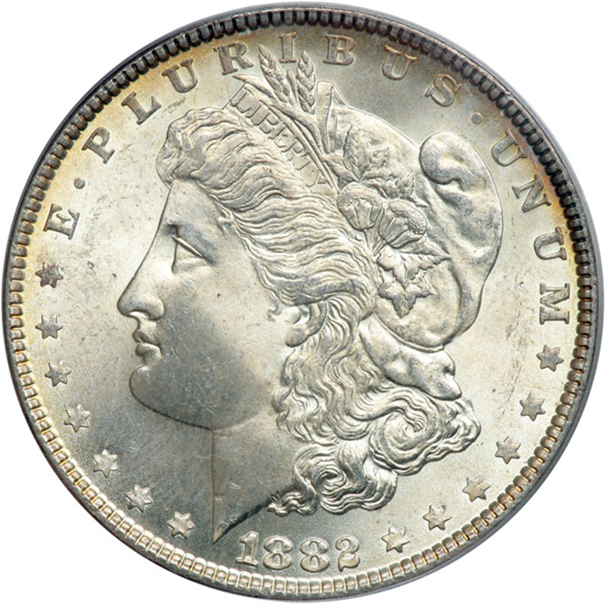 1882 Morgan Dollar. PCGS graded MS-65. CAC Approved. Well struck with a hint of light gold tone on the obverse (PCGS # 7132) .