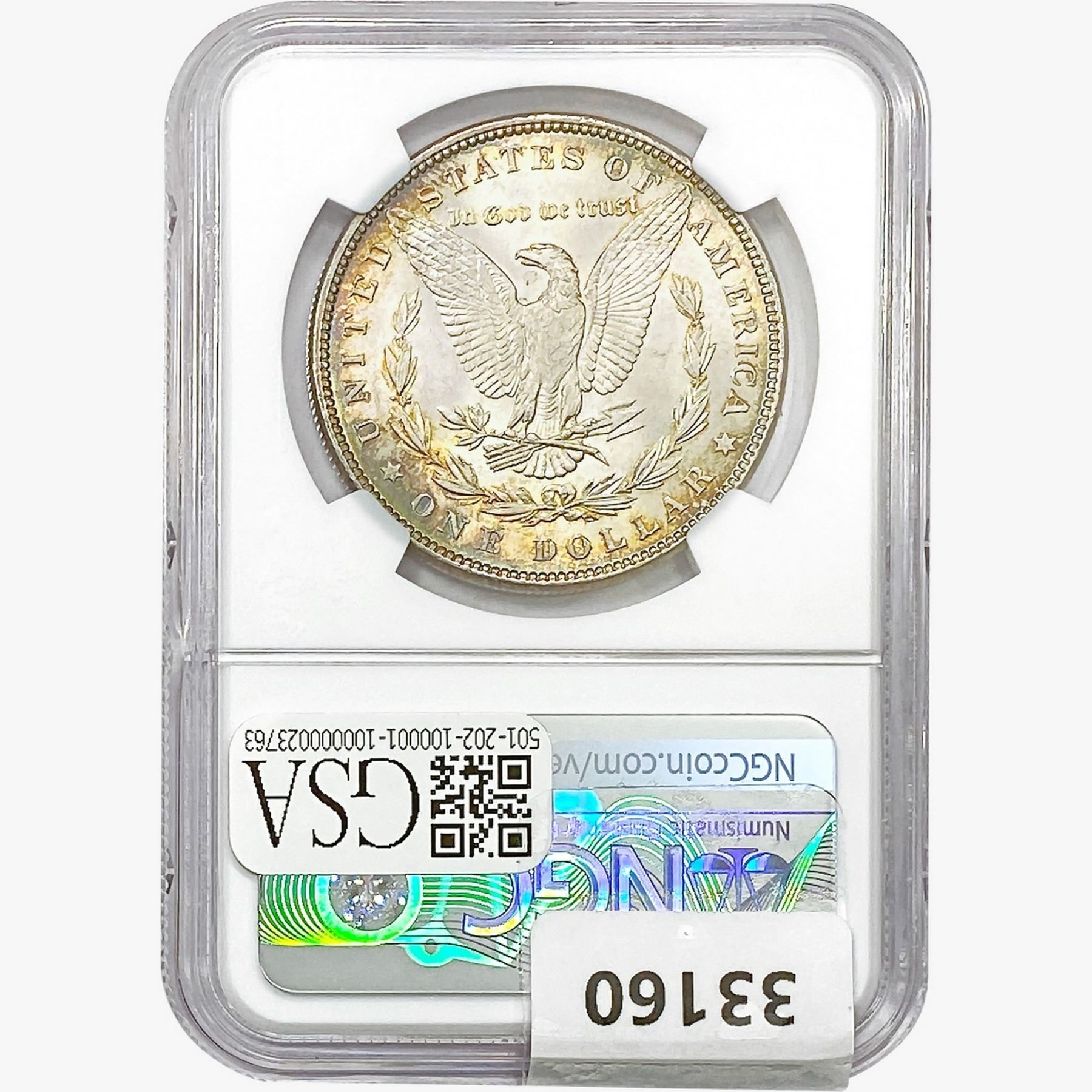 COINS AND CURRENCY LISTED IN GSA’S CATALOG AS GRADED AND ENCAPSULATED BY PCGS, NGC, ANACS, ICG, PCGS CURRENCY, PMG, PCGS BANKNOTE GRADING, CMC OR ANY OTHER THIRD-PARTY GRADING SERVICE ARE LIKEWISE SOLD “AS-IS” EXCEPT AS EXPRESSLY SET FORTH HEREIN. ALL THIRD-PARTY GRADING SERVICE GUARANTEES, INCLUDING AUTHENTICITY, ARE THE SOLE RESPONSIBILITY OF THE THIRD-PARTY GRADING SERVICE AND NOT WARRANTIES OR GUARANTEES OF GSA. BIDDERS SHOULD CONTACT THESE THIRD-PARTY GRADING SERVICES DIRECTLY WITH RESPECT TO ANY CLAIMS OR QUESTIONS THEY MAY HAVE CONCERNING THEIR GUARANTEES AND WARRANTIES. BIDDERS ACKNOWLEDGE AND AGREE THAT AUCTIONEER IS NOT BOUND BY OR LIABLE FOR ANY OPINION OR CERTIFICATION BY ANY THIRD-PARTY GRADING SERVICE. REMOVAL OF A PRODUCT FROM ITS PROTECTIVE CASING OR HOLDER OR ALTERATION OF ANY COIN HOLDER WAIVES ALL RIGHTS CONCERNING THE PRODUCT CONTAINED THEREIN.