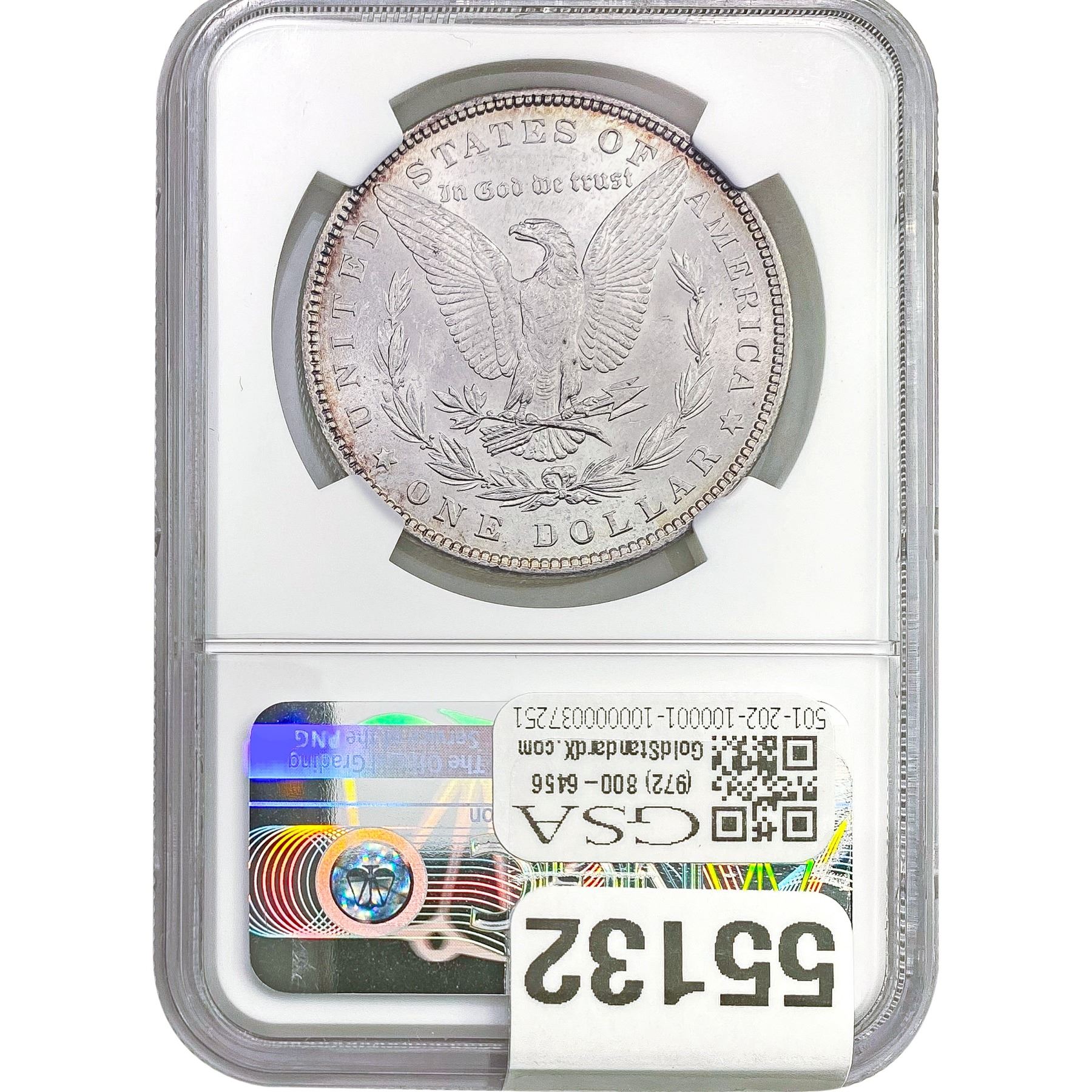 e. Coins sold referencing a third-party grading service are sold “AS IS” without any express or implied warranty, except for a guarantee by GSA that they are genuine. Removal or alteration of the holder, voids all of Bidder’s claims concerning that Product. Certain warranties may be available from the grading services and Bidders are referred to them for further details: Numismatic Guaranty Corporation (NGC), PO Box 4776, Sarasota, FL 34230, www.ngccoin.com/services/writtenguarantee.asp; Professional Coin Grading Services (PCGS), PO Box 9458, Newport Beach, CA 92658, www.pcgs.com/guarantee.html; ANACS, 6555 S. Kenton St., Ste. 303, Englewood, CO 80111; and Independent Coin Grading Co. (ICG), 7901 East Bellview, Ave., Suite 50, Englewood, CO 80111.