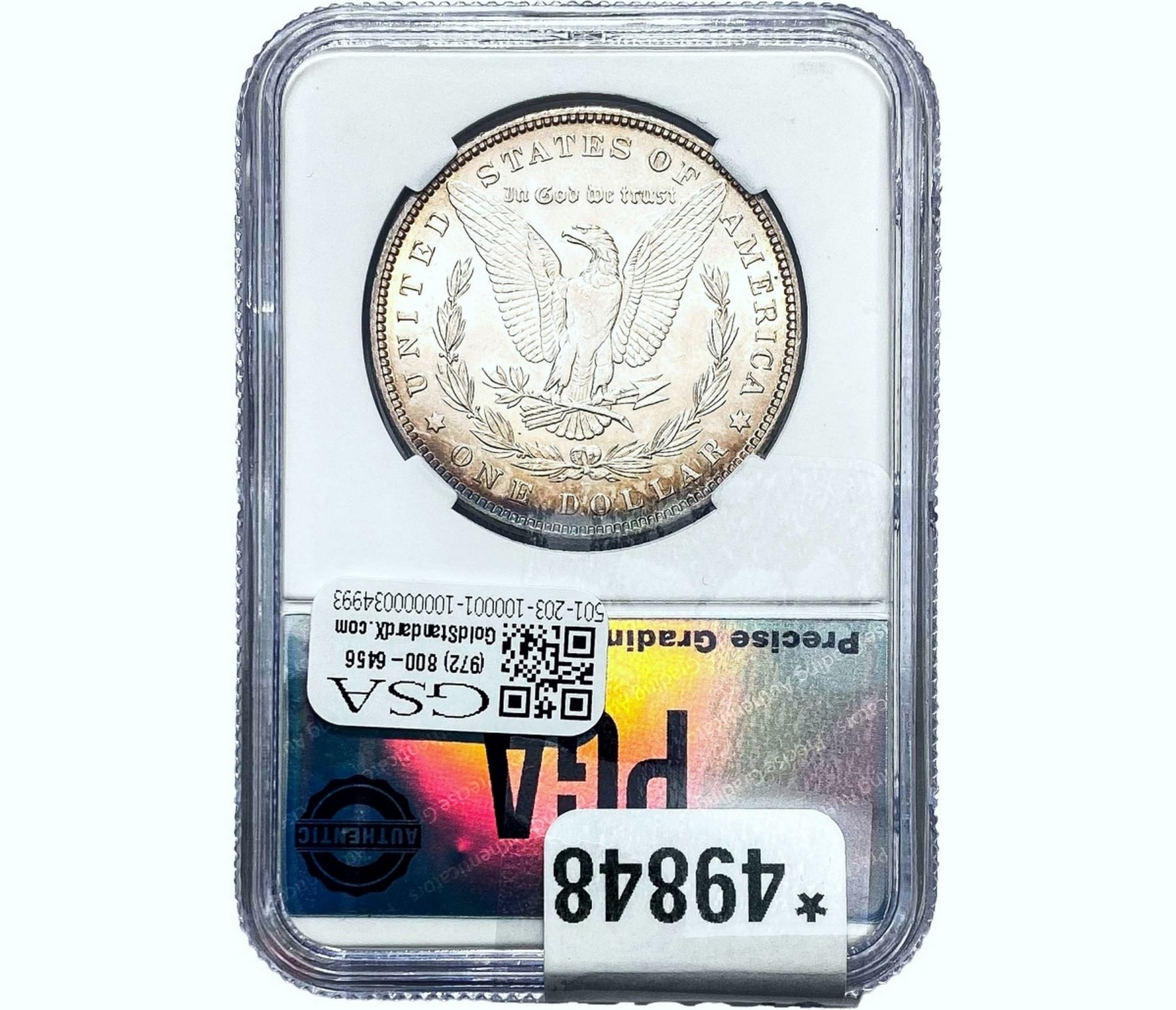 l. All non-certified coins and currency are guaranteed genuine, but are not guaranteed as to grade, since grading is a matter of opinion, an art and not a science, and therefore the description rendered by GSA or any third-party grading service may not agree with the opinion of others (including trained experts), and the same expert may not grade the same item with the same grade at two different times. GSA may, but is not obligated to, express an opinion as to non-certified numismatic items, in GSA’s opinion, or by its employees’ experience and the current interpretation of the American Numismatic Association’s standards as of the date the catalog was prepared. There is no guarantee or warranty expressed or implied that the grading opinions utilized by GSA, if any, will meet the standards of any grading service at any time in the future.