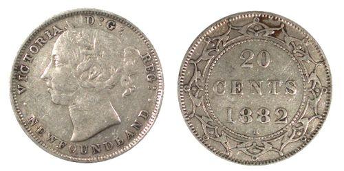 0550 - 1882 Newfoundland Twenty Cents-ICCS VF20