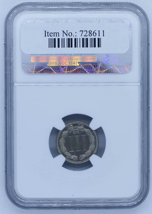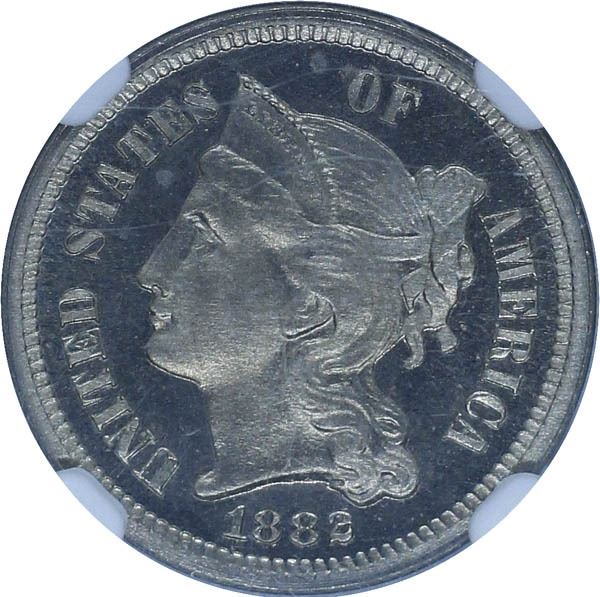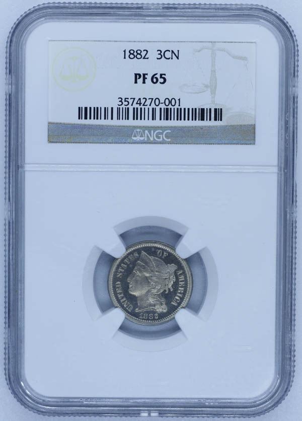 1882 Nickel Three Cents. NGC graded Proof 65.