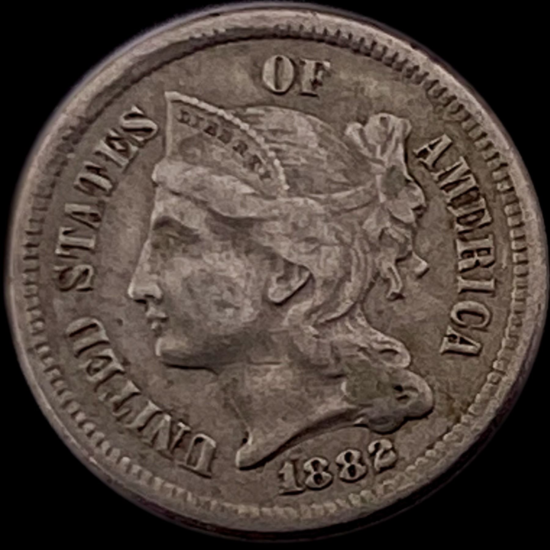 1882 Nickel Three-Cent Piece NEARLY UNCIRCULATED