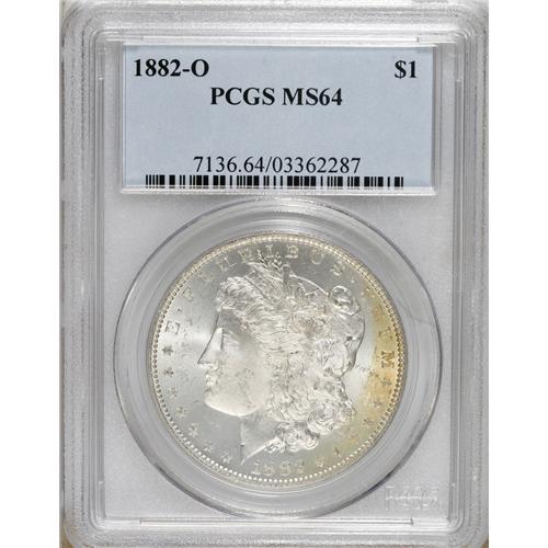 <B>1882-O $1 MS64 PCGS.</B></I> PCGS Population (3920/579). NGC Census: (4484/396). Mintage: 6,090,000. Numismedia Wsl. Price: $60. (#7136)<BR><BR><b>Shipping:</b> Coins & Currency (<a target="_blank" href="http://www.heritageauctions.com/common/shipping.php">view shipping information</a>)