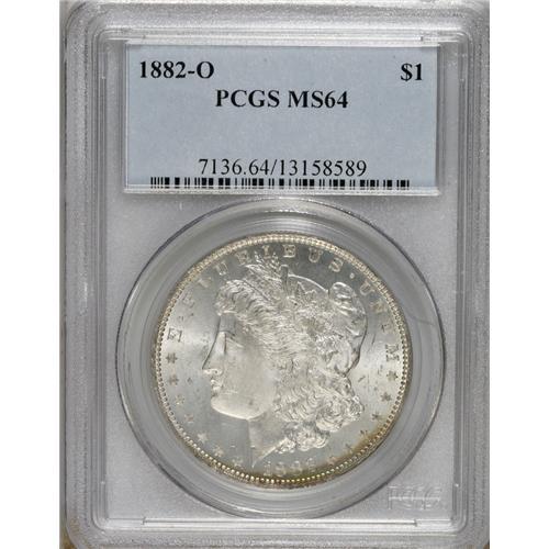 <B>1882-O $1 MS64 PCGS.</B></I> PCGS Population (3939/583). NGC Census: (9046/806). Mintage: 6,090,000. Numismedia Wsl. Price for NGC/PCGS coin in MS64: $60. (#7136)<BR><BR><b>Shipping:</b> Coins & Currency (<a target="_blank" href="http://www.heritageauctions.com/common/shipping.php">view shipping information</a>)