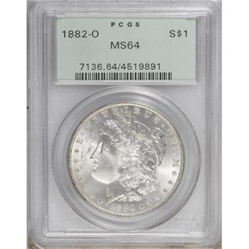 <B>1882-O $1 MS64 PCGS.</B></I> PCGS Population (4044/611). NGC Census: (4639/419). Mintage: 6,090,000. Numismedia Wsl. Price for NGC/PCGS coin in MS64: $60. (#7136)<BR><BR><B>Coin Engraver:</B> George T. Morgan<BR><BR><b>Shipping:</b> Coins & Currency (<a target="_blank" href="http://www.heritageauctions.com/common/shipping.php">view shipping information</a>)