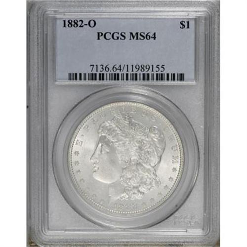 <B>1882-O $1 MS64 PCGS.</B></I> . PCGS Population (4083/621). NGC Census: (4646/420). Mintage: 6,090,000. Numismedia Wsl. Price for NGC/PCGS coin in MS64: $63. (#7136)<BR><BR><B>Coin Engraver:</B> George T. Morgan<BR><BR><b>Shipping:</b> Coins & Currency (<a target="_blank" href="http://www.heritageauctions.com/common/shipping.php">view shipping information</a>)