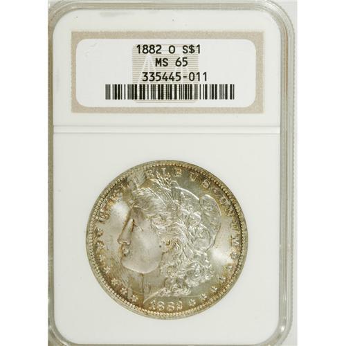 <B>1882-O $1 MS65 NGC.</B></I> NGC Census: (386/10). PCGS Population (560/19). Mintage: 6,090,000. Numismedia Wsl. Price: $760. (#7136)<BR><BR><b>Shipping:</b> Coins & Currency (<a target="_blank" href="http://www.heritageauctions.com/common/shipping.php">view shipping information</a>)
