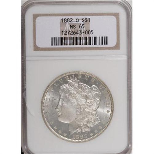 <B>1882-O $1 MS65 NGC.</B></I> Exquisitely detailed for this New Orleans issue with particularly impressive detail on Liberty's hair. Both sides show flashy, essentially untoned fields that fall just shy of the reflectivity needed for a Prooflike designation.<BR><I>From The Oxford Collection.</B></I><BR><BR><B>Coin Engraver:</B> George T. Morgan<BR><BR><b>Shipping:</b> Coins & Currency (<a target="_blank" href="http://www.heritageauctions.com/common/shipping.php">view shipping information</a>)