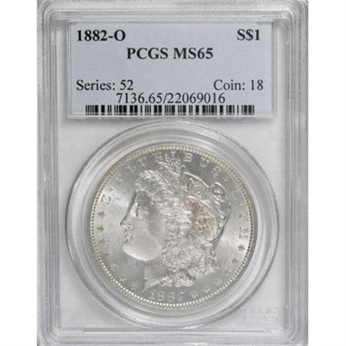 <B>1882-O $1 MS65 PCGS,</B></I> well struck and faintly toned with booming luster and outstanding preservation; and a <B>1900 MS65 PCGS,</B></I> crisply struck and untoned, lustrous, a clean obverse, housed in an old green label holder.<BR><I>From the Reuben Reinstein Collection.</B></I><BR><BR><b>Shipping:</b> Coins & Currency (<a target="_blank" href="http://www.heritageauctions.com/common/shipping.php">view shipping information</a>)