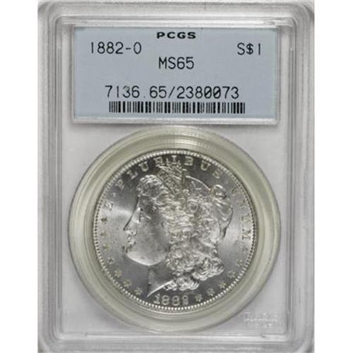 <B>1882-O $1 MS65 PCGS.</B></I> A crisply struck and strongly lustrous Gem example of this comparatively available O-mint issue, minimally marked with small dots of milky patina over the obverse. Highly appealing with a handful of scattered luster grazes on each side.<BR><I>From The Mario Eller Collection, Part One.</B></I><BR><BR><B>Coin Engraver:</B> George T. Morgan<BR><BR><b>Shipping:</b> Coins & Currency (<a target="_blank" href="http://www.heritageauctions.com/common/shipping.php">view shipping information</a>)