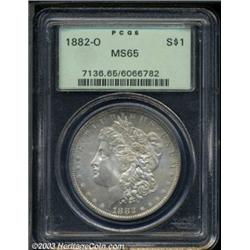 <TABLE cellSpacing=0 cellPadding=0 width="100%" bgColor=#000000 border=0><TBODY><TR><TD width="100%"><TABLE cellSpacing=1 cellPadding=3 width="100%" border=0><TBODY><TR><TD width="100%" bgColor=#79735c><FONT face=arial color=#ffffff size=3><B>Description</B> </FONT></TD></TR><TR><TD width="100%" bgColor=#ffffff><FONT face=arial size=2><B>1882-O $1 MS65 PCGS.</B></I> While the luster is subdued due to the slightly granular texture, the strike is bold and the specimen shows very few marks for a MS65. Thus, an ultimately pleasing and seemingly conservatively graded piece. </FONT></TD></TR></TBODY></TABLE></TD></TR></TBODY></TABLE><BR><A name=PricesRealized></A><TABLE cellSpacing=0 cellPadding=0 width="100%" bgColor=#000000 border=0><TBODY><TR><TD width="100%"><TABLE cellSpacing=1 cellPadding=3 width="100%" border=0><TBODY><TR><TD width="100%" bgColor=#79735c><A name=PR><FONT face=arial color=#ffffff size=3><B>Previous Prices from Heritage Auctions</B> </FONT></A></TD></TR><TR><TD bgColor=#f6f6ed><TABLE cellSpacing=0 cellPadding=0 width="100%" border=1><TBODY><TR><TD align=middle width="33%"><B>Date</B></TD><TD align=middle width="33%"><B>Service</B></TD><TD align=middle width="33%"><B>Price</B></TD></TR><TR bgColor=whitesmoke><TD width="33%"><B>09/01/1996</B></TD><TD width="33%">NGC</TD><TD width="33%">$550.00</TD></TR><TR bgColor=whitesmoke><TD width="33%"><B>09/01/1996</B></TD><TD width="33%">NGC</TD><TD width="33%">$550.00</TD></TR><TR bgColor=whitesmoke><TD width="33%"><B>02/01/2000</B></TD><TD width="33%">NGC</TD><TD width="33%">$546.00</TD></TR><TR bgColor=whitesmoke><TD width="33%"><B>02/01/2000</B></TD><TD width="33%">NGC</TD><TD width="33%">$546.00</TD></TR><TR bgColor=whitesmoke><TD width="33%"><B>07/24/2001</B></TD><TD width="33%">NGC</TD><TD width="33%">$390.00</TD></TR><TR bgColor=whitesmoke><TD width="33%"><B>07/24/2001</B></TD><TD width="33%">NGC</TD><TD width="33%">$390.00</TD></TR><TR bgColor=whitesmoke><TD width="33%"><B>04/08/1994</B></TD><TD width="33%">NGC</TD><TD width="33%">$495.00</TD></TR><TR bgColor=whitesmoke><TD width="33%"><B>04/08/1994</B></TD><TD width="33%">NGC</TD><TD width="33%">$495.00</TD></TR><TR bgColor=whitesmoke><TD width="33%"><B>09/10/1993</B></TD><TD width="33%">NGC</TD><TD width="33%">$522.50</TD></TR><TR bgColor=whitesmoke><TD width="33%"><B>09/10/1993</B></TD><TD width="33%">NGC</TD><TD width="33%">$522.50</TD></TR><TR bgColor=whitesmoke><TD width="33%"><B>01/07/1998</B></TD><TD width="33%">NGC</TD><TD width="33%">$467.50</TD></TR><TR bgColor=whitesmoke><TD width="33%"><B>01/07/1998</B></TD><TD width="33%">NGC</TD><TD width="33%">$467.50</TD></TR><TR bgColor=whitesmoke><TD width="33%"><B>08/12/2003</B></TD><TD width="33%">NGC</TD><TD width="33%">$460.00</TD></TR><TR bgColor=whitesmoke><TD width="33%"><B>08/12/2003</B></TD><TD width="33%">NGC</TD><TD width="33%">$460.00</TD></TR><TR bgColor=whitesmoke><TD width="33%"><B>05/06/2003</B></TD><TD width="33%">NGC</TD><TD width="33%">$483.00</TD></TR><TR bgColor=whitesmoke><TD width="33%"><B>05/06/2003</B></TD><TD width="33%">NGC</TD><TD width="33%">$483.00</TD></TR><TR bgColor=whitesmoke><TD width="33%"><B>06/24/2003</B></TD><TD width="33%">NGC</TD><TD width="33%">$471.50</TD></TR><TR bgColor=whitesmoke><TD width="33%"><B>06/24/2003</B></TD><TD width="33%">NGC</TD><TD width="33%">$471.50</TD></TR><TR bgColor=whitesmoke><TD width="33%"><B>04/15/2003</B></TD><TD width="33%">NGC</TD><TD width="33%">$471.50</TD></TR><TR bgColor=whitesmoke><TD width="33%"><B>04/15/2003</B></TD><TD width="33%">NGC</TD><TD width="33%">$471.50</TD></TR><TR bgColor=whitesmoke><TD width="33%"><B>08/06/2003</B></TD><TD width="33%">NGC</TD><TD width="33%">$376.05</TD></TR><TR bgColor=whitesmoke><TD width="33%"><B>08/06/2003</B></TD><TD width="33%">NGC</TD><TD width="33%">$376.05</TD></TR><TR bgColor=whitesmoke><TD width="33%"><B>07/15/2003</B></TD><TD width="33%">NGC</TD><TD width="33%">$471.50</TD></TR><TR bgColor=whitesmoke><TD width="33%"><B>07/15/2003</B></TD><TD width="33%">NGC</TD><TD width="33%">$471.50</TD></TR><TR bgColor=whitesmoke><TD width="33%"><B>02/18/2003</B></TD><TD width="33%">NGC</TD><TD width="33%">$460.00</TD></TR><TR bgColor=whitesmoke><TD width="33%"><B>02/18/2003</B></TD><TD width="33%">NGC</TD><TD width="33%">$460.00</TD></TR><TR bgColor=whitesmoke><TD width="33%"><B>07/30/2002</B></TD><TD width="33%">ANACS</TD><TD width="33%">$322.00</TD></TR><TR bgColor=whitesmoke><TD width="33%"><B>07/30/2002</B></TD><TD width="33%">ANACS</TD><TD width="33%">$322.00</TD></TR><TR bgColor=whitesmoke><TD width="33%"><B>02/24/2001</B></TD><TD width="33%">ANACS</TD><TD width="33%">$287.50</TD></TR><TR bgColor=whitesmoke><TD width="33%"><B>02/24/2001</B></TD><TD width="33%">ANACS</TD><TD width="33%">$287.50</TD></TR><TR bgColor=whitesmoke><TD width="33%"><B>08/05/2000</B></TD><TD width="33%">ANACS</TD><TD width="33%">$460.00</TD></TR><TR bgColor=whitesmoke><TD width="33%"><B>08/05/2000</B></TD><TD width="33%">ANACS</TD><TD width="33%">$460.00</TD></TR><TR bgColor=whitesmoke><TD width="33%"><B>07/29/2003</B></TD><TD width="33%">PCGS</TD><TD width="33%">$552.00</TD></TR><TR bgColor=whitesmoke><TD width="33%"><B>07/29/2003</B></TD><TD width="33%">PCGS</TD><TD width="33%">$552.00</TD></TR><TR bgColor=whitesmoke><TD width="33%"><B>01/11/2003</B></TD><TD width="33%">PCGS</TD><TD width="33%">$563.50</TD></TR><TR bgColor=whitesmoke><TD width="33%"><B>01/11/2003</B></TD><TD width="33%">PCGS</TD><TD width="33%">$563.50</TD></TR><TR bgColor=whitesmoke><TD width="33%"><B>10/08/2002</B></TD><TD width="33%">PCGS</TD><TD width="33%">$529.00</TD></TR><TR bgColor=whitesmoke><TD width="33%"><B>10/08/2002</B></TD><TD width="33%">PCGS</TD><TD width="33%">$529.00</TD></TR><TR bgColor=whitesmoke><TD width="33%"><B>07/30/2002</B></TD><TD width="33%">PCGS</TD><TD width="33%">$575.00</TD></TR><TR bgColor=whitesmoke><TD width="33%"><B>07/30/2002</B></TD><TD width="33%">PCGS</TD><TD width="33%">$575.00</TD></TR><TR bgColor=whitesmoke><TD width="33%"><