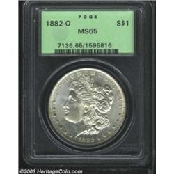<TABLE cellSpacing=0 cellPadding=0 width="100%" bgColor=#000000 border=0><TBODY><TR><TD width="100%"><TABLE cellSpacing=1 cellPadding=3 width="100%" border=0><TBODY><TR><TD width="100%" bgColor=#79735c><FONT face=arial color=#ffffff size=3><B>Description</B> </FONT></TD></TR><TR><TD width="100%" bgColor=#ffffff><FONT face=arial size=2><B>1882-O $1 MS65 PCGS.</B></I> A sharply struck and lustrous Gem with impressive surfaces. A small strike-through (as made) beside the R in DOLLAR serves as a pedigree. </FONT></TD></TR></TBODY></TABLE></TD></TR></TBODY></TABLE><BR><A name=PricesRealized></A><TABLE cellSpacing=0 cellPadding=0 width="100%" bgColor=#000000 border=0><TBODY><TR><TD width="100%"><TABLE cellSpacing=1 cellPadding=3 width="100%" border=0><TBODY><TR><TD width="100%" bgColor=#79735c><A name=PR><FONT face=arial color=#ffffff size=3><B>Previous Prices from Heritage Auctions</B> </FONT></A></TD></TR><TR><TD bgColor=#f6f6ed><TABLE cellSpacing=0 cellPadding=0 width="100%" border=1><TBODY><TR><TD align=middle width="33%"><B>Date</B></TD><TD align=middle width="33%"><B>Service</B></TD><TD align=middle width="33%"><B>Price</B></TD></TR><TR bgColor=whitesmoke><TD width="33%"><B>09/01/1996</B></TD><TD width="33%">NGC</TD><TD width="33%">$550.00</TD></TR><TR bgColor=whitesmoke><TD width="33%"><B>09/01/1996</B></TD><TD width="33%">NGC</TD><TD width="33%">$550.00</TD></TR><TR bgColor=whitesmoke><TD width="33%"><B>02/01/2000</B></TD><TD width="33%">NGC</TD><TD width="33%">$546.00</TD></TR><TR bgColor=whitesmoke><TD width="33%"><B>02/01/2000</B></TD><TD width="33%">NGC</TD><TD width="33%">$546.00</TD></TR><TR bgColor=whitesmoke><TD width="33%"><B>07/24/2001</B></TD><TD width="33%">NGC</TD><TD width="33%">$390.00</TD></TR><TR bgColor=whitesmoke><TD width="33%"><B>07/24/2001</B></TD><TD width="33%">NGC</TD><TD width="33%">$390.00</TD></TR><TR bgColor=whitesmoke><TD width="33%"><B>04/08/1994</B></TD><TD width="33%">NGC</TD><TD width="33%">$495.00</TD></TR><TR bgColor=whitesmoke><TD width="33%"><B>04/08/1994</B></TD><TD width="33%">NGC</TD><TD width="33%">$495.00</TD></TR><TR bgColor=whitesmoke><TD width="33%"><B>09/10/1993</B></TD><TD width="33%">NGC</TD><TD width="33%">$522.50</TD></TR><TR bgColor=whitesmoke><TD width="33%"><B>09/10/1993</B></TD><TD width="33%">NGC</TD><TD width="33%">$522.50</TD></TR><TR bgColor=whitesmoke><TD width="33%"><B>01/07/1998</B></TD><TD width="33%">NGC</TD><TD width="33%">$467.50</TD></TR><TR bgColor=whitesmoke><TD width="33%"><B>01/07/1998</B></TD><TD width="33%">NGC</TD><TD width="33%">$467.50</TD></TR><TR bgColor=whitesmoke><TD width="33%"><B>08/12/2003</B></TD><TD width="33%">NGC</TD><TD width="33%">$460.00</TD></TR><TR bgColor=whitesmoke><TD width="33%"><B>08/12/2003</B></TD><TD width="33%">NGC</TD><TD width="33%">$460.00</TD></TR><TR bgColor=whitesmoke><TD width="33%"><B>05/06/2003</B></TD><TD width="33%">NGC</TD><TD width="33%">$483.00</TD></TR><TR bgColor=whitesmoke><TD width="33%"><B>05/06/2003</B></TD><TD width="33%">NGC</TD><TD width="33%">$483.00</TD></TR><TR bgColor=whitesmoke><TD width="33%"><B>06/24/2003</B></TD><TD width="33%">NGC</TD><TD width="33%">$471.50</TD></TR><TR bgColor=whitesmoke><TD width="33%"><B>06/24/2003</B></TD><TD width="33%">NGC</TD><TD width="33%">$471.50</TD></TR><TR bgColor=whitesmoke><TD width="33%"><B>04/15/2003</B></TD><TD width="33%">NGC</TD><TD width="33%">$471.50</TD></TR><TR bgColor=whitesmoke><TD width="33%"><B>04/15/2003</B></TD><TD width="33%">NGC</TD><TD width="33%">$471.50</TD></TR><TR bgColor=whitesmoke><TD width="33%"><B>08/06/2003</B></TD><TD width="33%">NGC</TD><TD width="33%">$376.05</TD></TR><TR bgColor=whitesmoke><TD width="33%"><B>08/06/2003</B></TD><TD width="33%">NGC</TD><TD width="33%">$376.05</TD></TR><TR bgColor=whitesmoke><TD width="33%"><B>07/15/2003</B></TD><TD width="33%">NGC</TD><TD width="33%">$471.50</TD></TR><TR bgColor=whitesmoke><TD width="33%"><B>07/15/2003</B></TD><TD width="33%">NGC</TD><TD width="33%">$471.50</TD></TR><TR bgColor=whitesmoke><TD width="33%"><B>02/18/2003</B></TD><TD width="33%">NGC</TD><TD width="33%">$460.00</TD></TR><TR bgColor=whitesmoke><TD width="33%"><B>02/18/2003</B></TD><TD width="33%">NGC</TD><TD width="33%">$460.00</TD></TR><TR bgColor=whitesmoke><TD width="33%"><B>07/30/2002</B></TD><TD width="33%">ANACS</TD><TD width="33%">$322.00</TD></TR><TR bgColor=whitesmoke><TD width="33%"><B>07/30/2002</B></TD><TD width="33%">ANACS</TD><TD width="33%">$322.00</TD></TR><TR bgColor=whitesmoke><TD width="33%"><B>02/24/2001</B></TD><TD width="33%">ANACS</TD><TD width="33%">$287.50</TD></TR><TR bgColor=whitesmoke><TD width="33%"><B>02/24/2001</B></TD><TD width="33%">ANACS</TD><TD width="33%">$287.50</TD></TR><TR bgColor=whitesmoke><TD width="33%"><B>08/05/2000</B></TD><TD width="33%">ANACS</TD><TD width="33%">$460.00</TD></TR><TR bgColor=whitesmoke><TD width="33%"><B>08/05/2000</B></TD><TD width="33%">ANACS</TD><TD width="33%">$460.00</TD></TR><TR bgColor=whitesmoke><TD width="33%"><B>07/29/2003</B></TD><TD width="33%">PCGS</TD><TD width="33%">$552.00</TD></TR><TR bgColor=whitesmoke><TD width="33%"><B>07/29/2003</B></TD><TD width="33%">PCGS</TD><TD width="33%">$552.00</TD></TR><TR bgColor=whitesmoke><TD width="33%"><B>01/11/2003</B></TD><TD width="33%">PCGS</TD><TD width="33%">$563.50</TD></TR><TR bgColor=whitesmoke><TD width="33%"><B>01/11/2003</B></TD><TD width="33%">PCGS</TD><TD width="33%">$563.50</TD></TR><TR bgColor=whitesmoke><TD width="33%"><B>10/08/2002</B></TD><TD width="33%">PCGS</TD><TD width="33%">$529.00</TD></TR><TR bgColor=whitesmoke><TD width="33%"><B>10/08/2002</B></TD><TD width="33%">PCGS</TD><TD width="33%">$529.00</TD></TR><TR bgColor=whitesmoke><TD width="33%"><B>07/30/2002</B></TD><TD width="33%">PCGS</TD><TD width="33%">$575.00</TD></TR><TR bgColor=whitesmoke><TD width="33%"><B>07/30/2002</B></TD><TD width="33%">PCGS</TD><TD width="33%">$575.00</TD></TR><TR bgColor=whitesmoke><TD width="33%"><B>06/08/2002</B></TD><TD width="33%">PCGS</TD><TD width="33%">$805.00