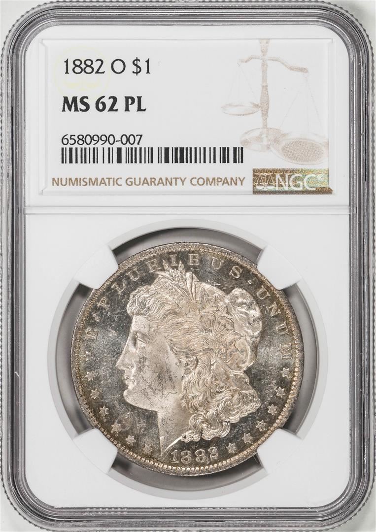 One 1882-O $1 Morgan Silver Dollar Coin NGC MS62PL. NGC Certified.