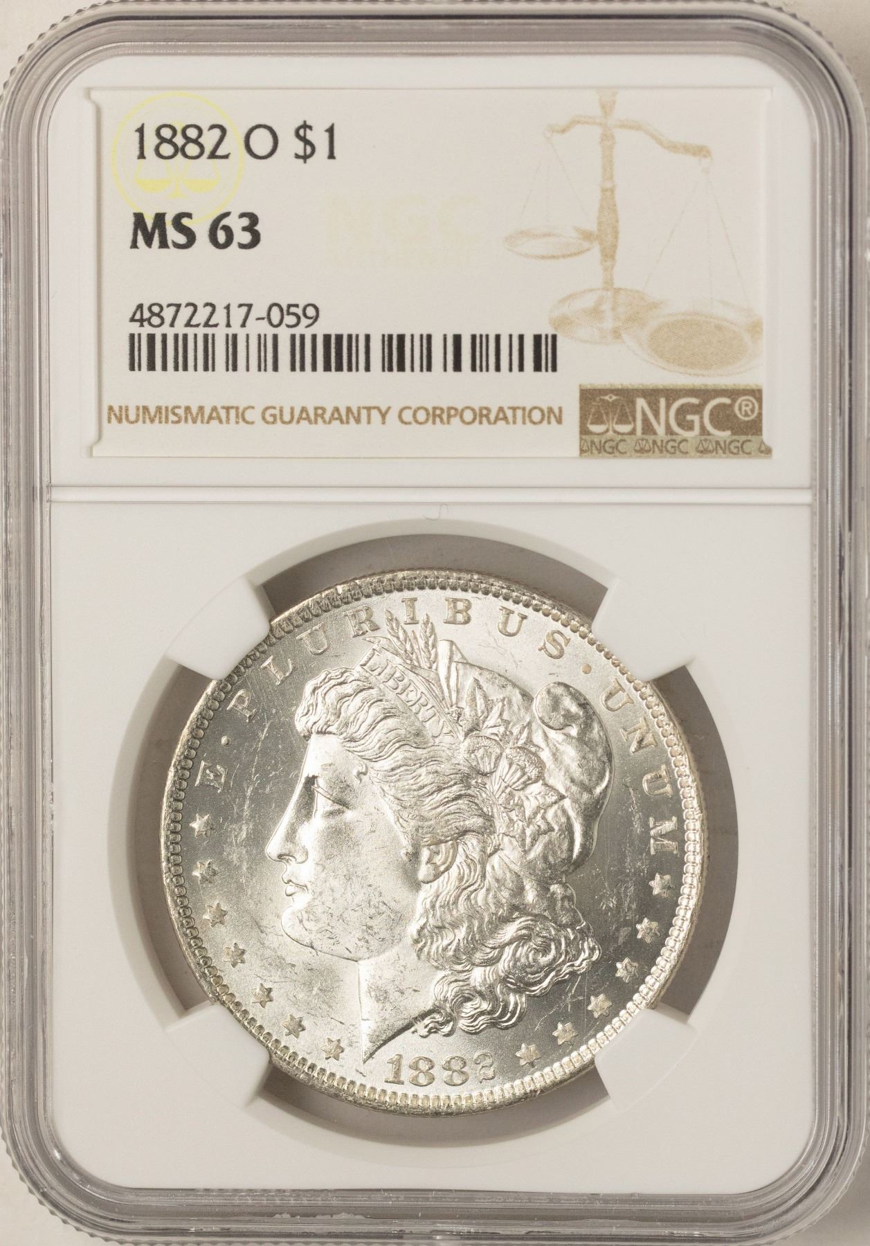 One 1882-O $1 Morgan Silver Dollar Coin NGC MS63.