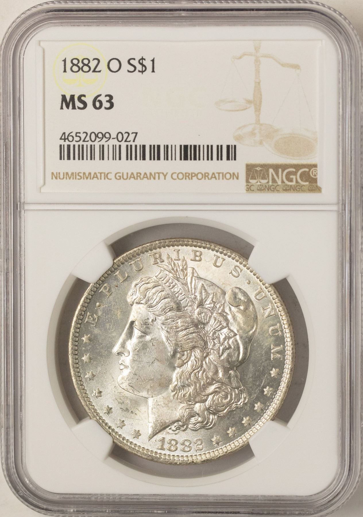 One 1882-O $1 Morgan Silver Dollar Coin NGC MS63.
