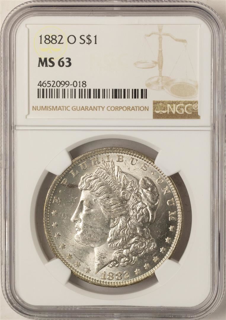 One 1882-O $1 Morgan Silver Dollar Coin NGC MS63. NGC Certified.