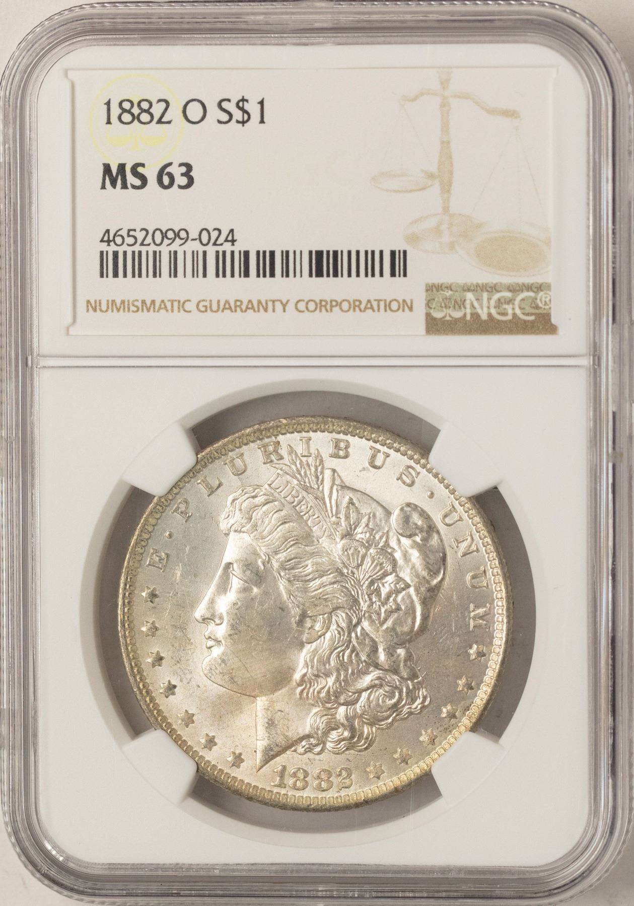 One 1882-O $1 Morgan Silver Dollar Coin NGC MS63.