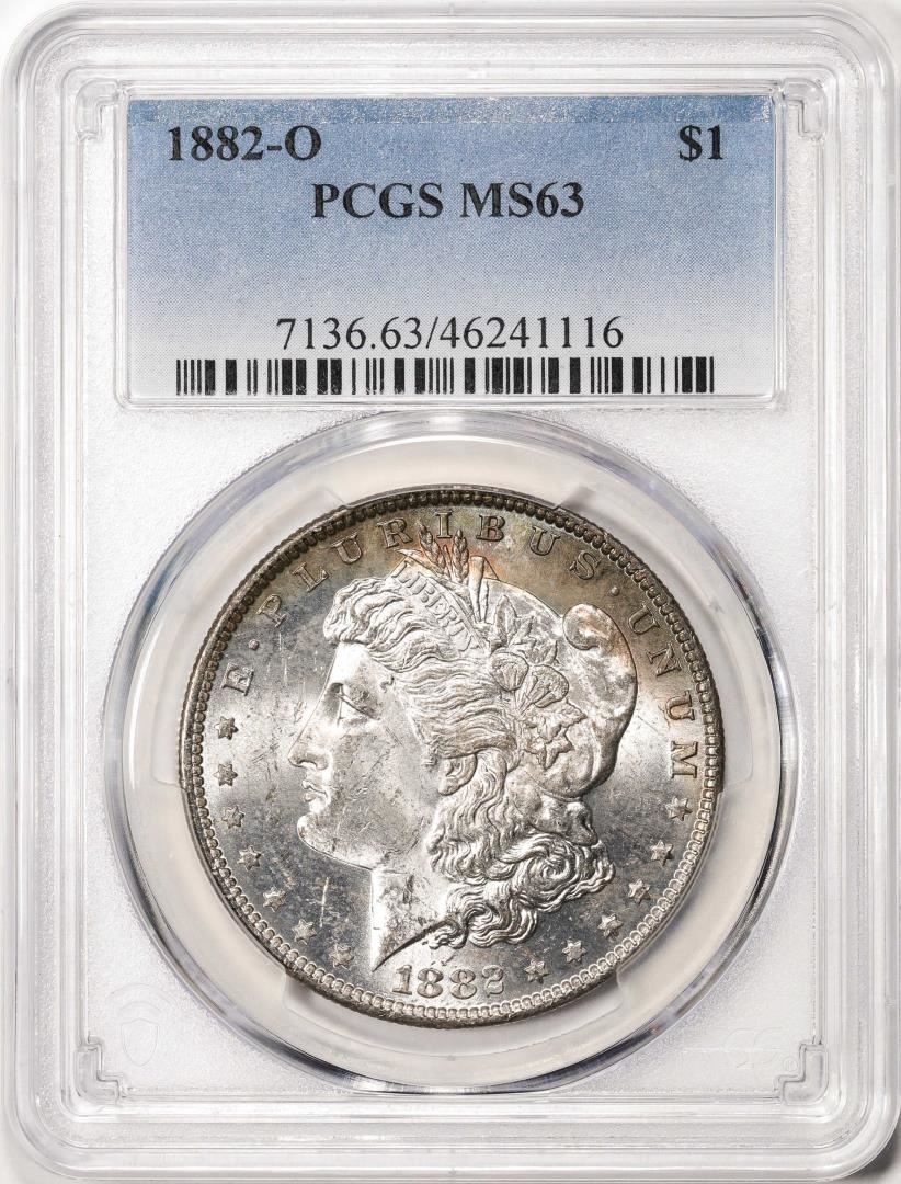 One 1882-O $1 Morgan Silver Dollar Coin PCGS MS63 Great Toning. PCGS Graded.