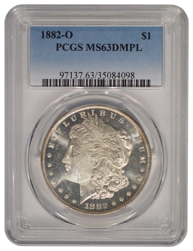 One 1882-O $1 Morgan Silver Dollar Coin PCGS MS63DMPL.