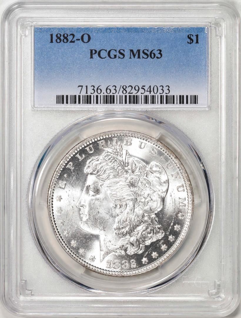 One 1882-O $1 Morgan Silver Dollar Coin PCGS MS63. PCGS Graded.