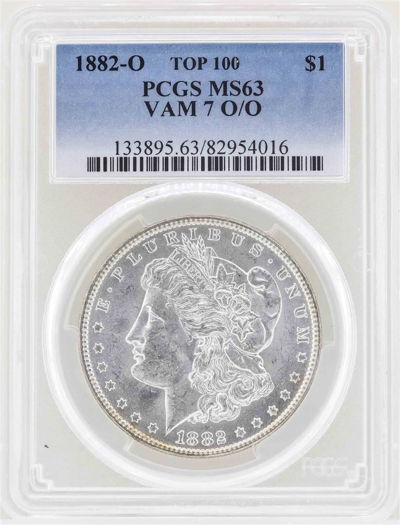 One 1882-O $1 Morgan Silver Dollar Coin VAM 7 O/O Top 100 PCGS MS63. PCGS Graded.