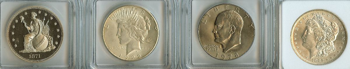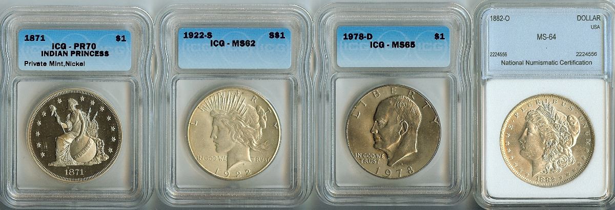 1882-O $1 NNC MS64, 1922-S $1 ICG MS62,1978-D $1 ICG MS65 + INDIAN PRINCESS PRIVATE MINT $1