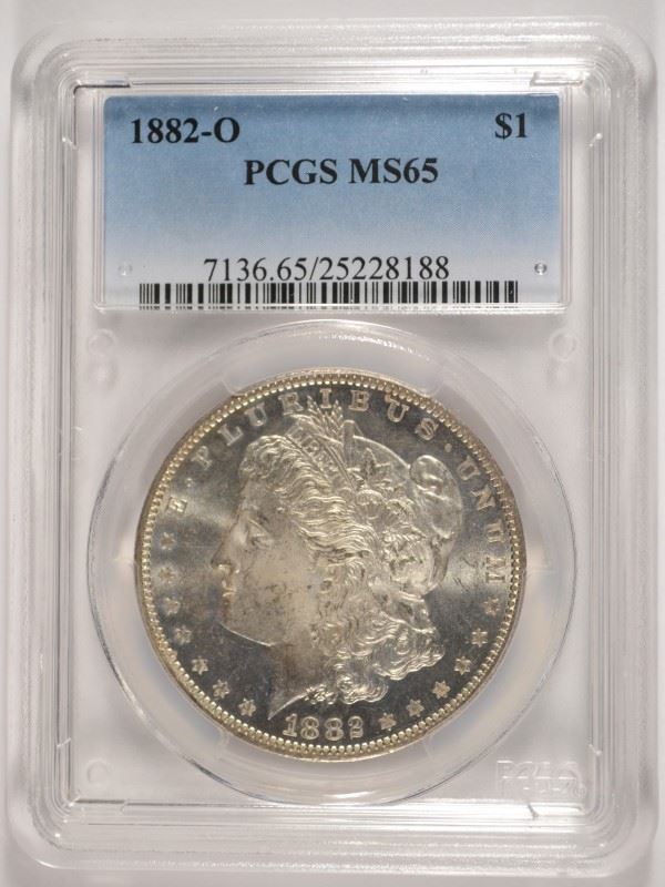 1882-O MORGAN SILVER DOLLAR, PCGS MS-65 BLAST WHITE, CHERRY, RARE!