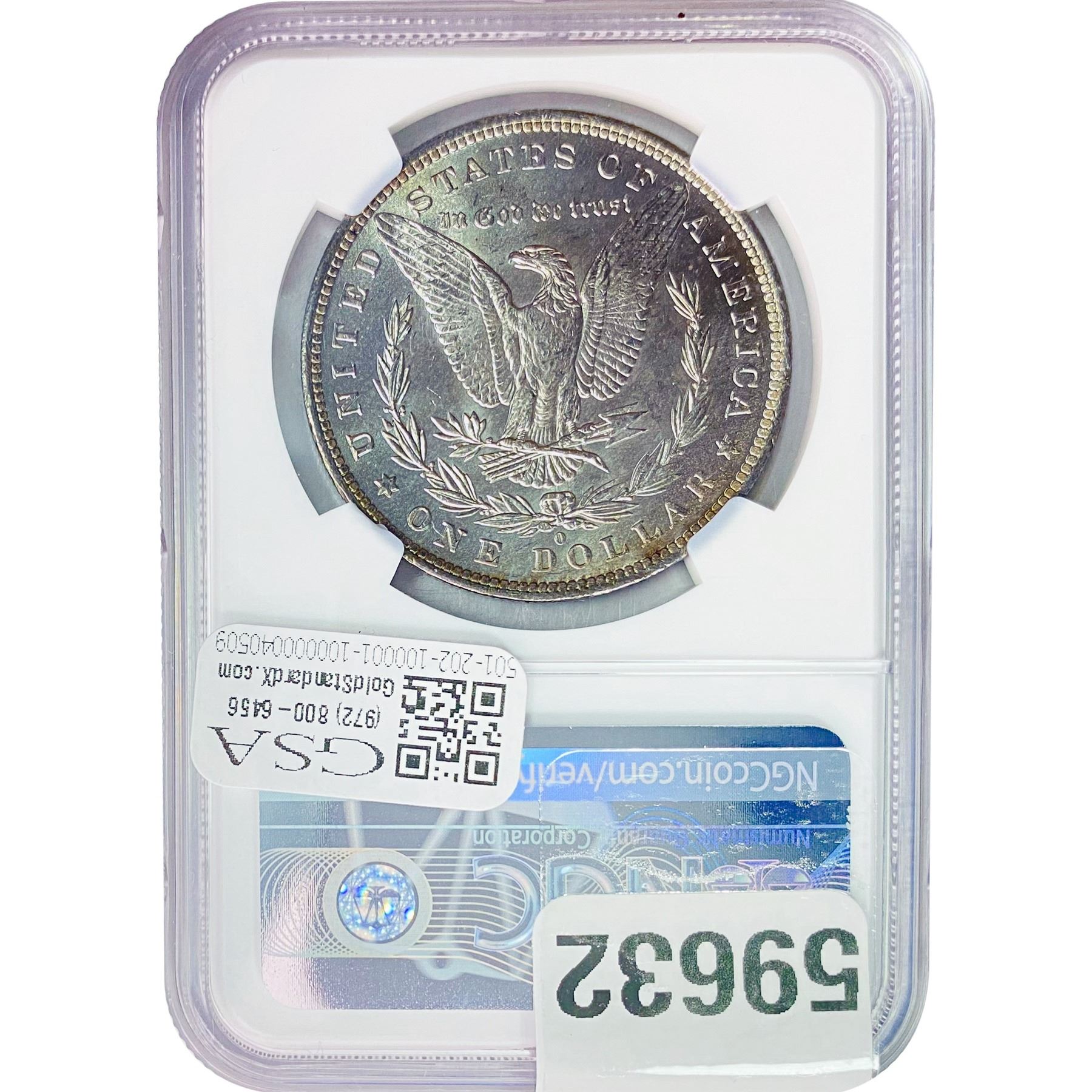 e. Coins sold referencing a third-party grading service are sold “AS IS” without any express or implied warranty, except for a guarantee by GSA that they are genuine. Removal or alteration of the holder, voids all of Bidder’s claims concerning that Product. Certain warranties may be available from the grading services and Bidders are referred to them for further details: Numismatic Guaranty Corporation (NGC), PO Box 4776, Sarasota, FL 34230, www.ngccoin.com/services/writtenguarantee.asp; Professional Coin Grading Services (PCGS), PO Box 9458, Newport Beach, CA 92658, www.pcgs.com/guarantee.html; ANACS, 6555 S. Kenton St., Ste. 303, Englewood, CO 80111; and Independent Coin Grading Co. (ICG), 7901 East Bellview, Ave., Suite 50, Englewood, CO 80111.