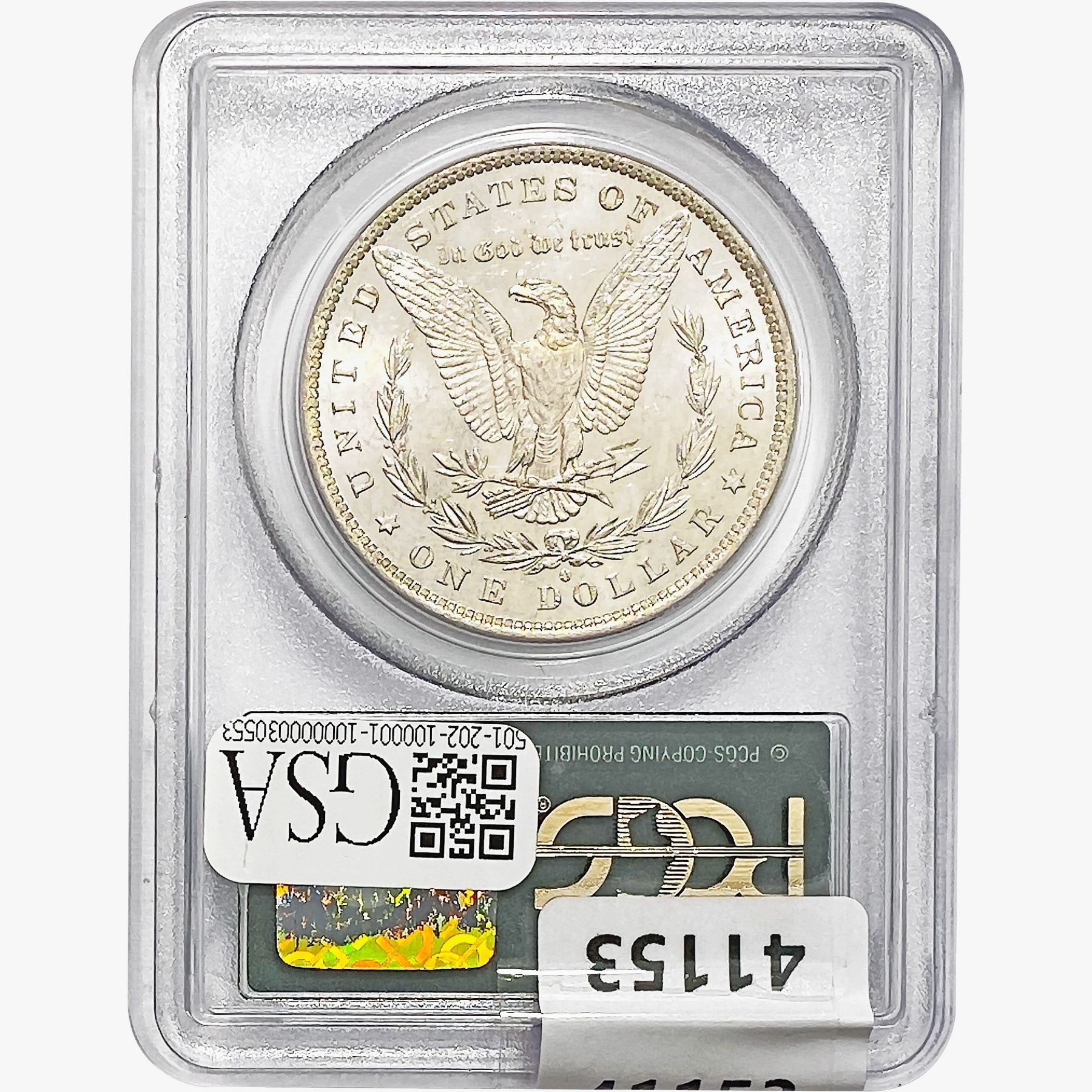 COINS AND CURRENCY LISTED IN GSA’S CATALOG AS GRADED AND ENCAPSULATED BY PCGS, NGC, ANACS, ICG, PCGS CURRENCY, PMG, PCGS BANKNOTE GRADING, CMC OR ANY OTHER THIRD-PARTY GRADING SERVICE ARE LIKEWISE SOLD “AS-IS” EXCEPT AS EXPRESSLY SET FORTH HEREIN. ALL THIRD-PARTY GRADING SERVICE GUARANTEES, INCLUDING AUTHENTICITY, ARE THE SOLE RESPONSIBILITY OF THE THIRD-PARTY GRADING SERVICE AND NOT WARRANTIES OR GUARANTEES OF GSA. BIDDERS SHOULD CONTACT THESE THIRD-PARTY GRADING SERVICES DIRECTLY WITH RESPECT TO ANY CLAIMS OR QUESTIONS THEY MAY HAVE CONCERNING THEIR GUARANTEES AND WARRANTIES. BIDDERS ACKNOWLEDGE AND AGREE THAT AUCTIONEER IS NOT BOUND BY OR LIABLE FOR ANY OPINION OR CERTIFICATION BY ANY THIRD-PARTY GRADING SERVICE. REMOVAL OF A PRODUCT FROM ITS PROTECTIVE CASING OR HOLDER OR ALTERATION OF ANY COIN HOLDER WAIVES ALL RIGHTS CONCERNING THE PRODUCT CONTAINED THEREIN.