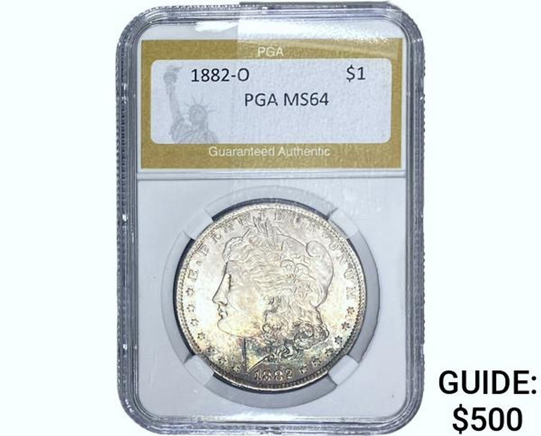 COINS AND CURRENCY LISTED IN GSA’S CATALOG AS GRADED AND ENCAPSULATED BY PCGS, NGC, ANACS, ICG, PCGS CURRENCY, PMG, PCGS BANKNOTE GRADING, CMC OR ANY OTHER THIRD-PARTY GRADING SERVICE ARE LIKEWISE SOLD “AS-IS” EXCEPT AS EXPRESSLY SET FORTH HEREIN. ALL THIRD-PARTY GRADING SERVICE GUARANTEES, INCLUDING AUTHENTICITY, ARE THE SOLE RESPONSIBILITY OF THE THIRD-PARTY GRADING SERVICE AND NOT WARRANTIES OR GUARANTEES OF GSA. BIDDERS SHOULD CONTACT THESE THIRD-PARTY GRADING SERVICES DIRECTLY WITH RESPECT TO ANY CLAIMS OR QUESTIONS THEY MAY HAVE CONCERNING THEIR GUARANTEES AND WARRANTIES. BIDDERS ACKNOWLEDGE AND AGREE THAT AUCTIONEER IS NOT BOUND BY OR LIABLE FOR ANY OPINION OR CERTIFICATION BY ANY THIRD-PARTY GRADING SERVICE. REMOVAL OF A PRODUCT FROM ITS PROTECTIVE CASING OR HOLDER OR ALTERATION OF ANY COIN HOLDER WAIVES ALL RIGHTS CONCERNING THE PRODUCT CONTAINED THEREIN.