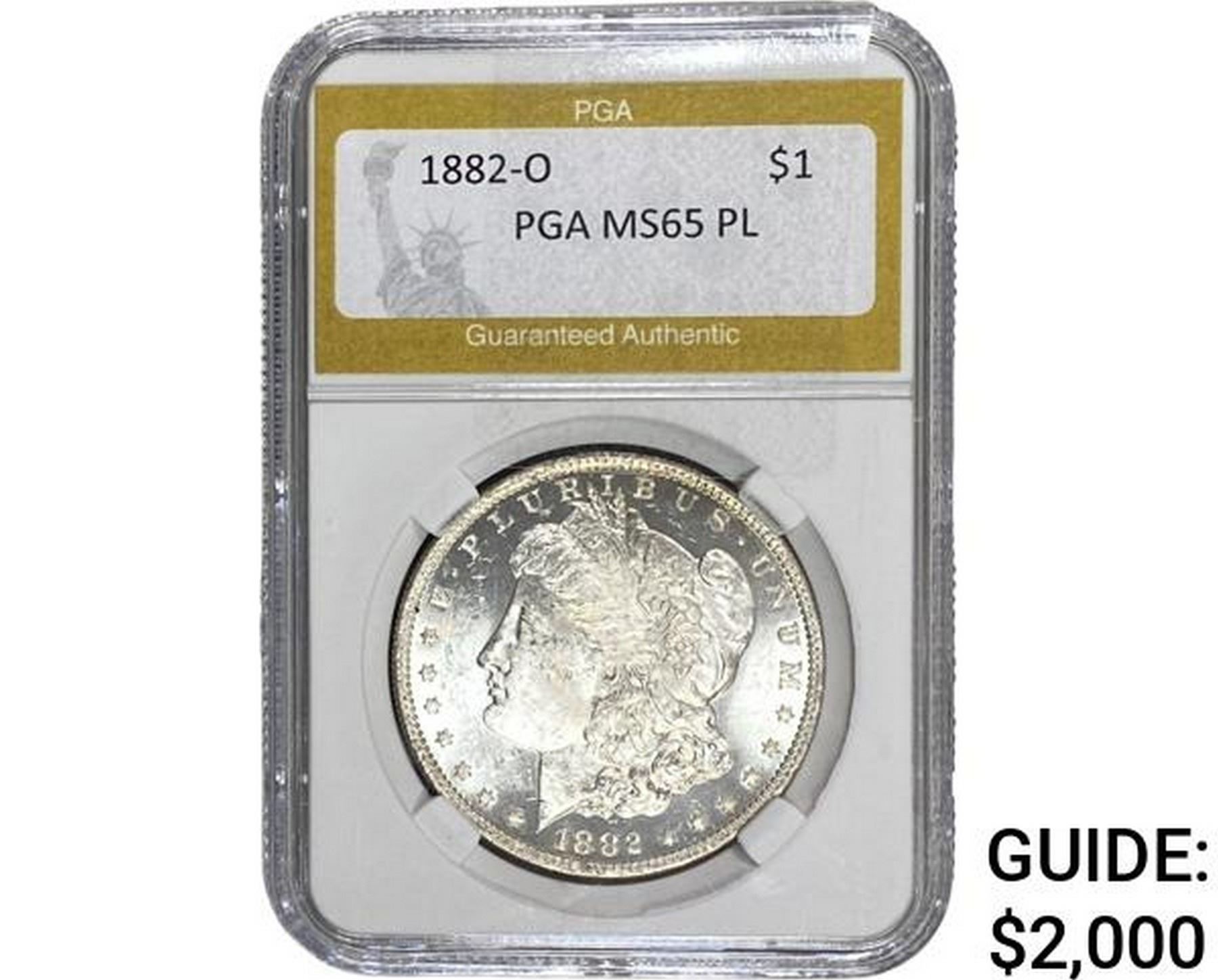 1882-O Morgan Silver Dollar PGA MS65 PL