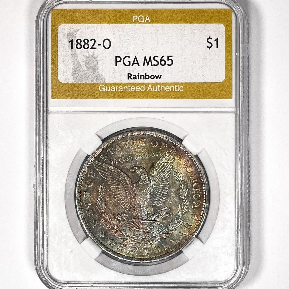 1882-O Morgan Silver Dollar PGA-MS65 Rainbow