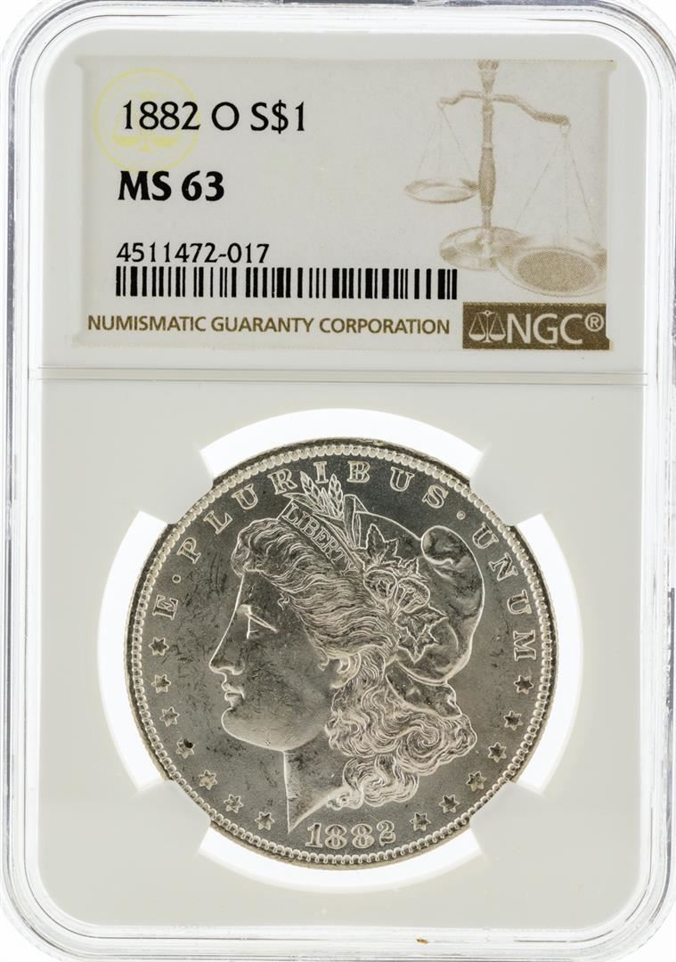 One 1882-O NGC MS63 Morgan Silver Dollar. NGC Certified.