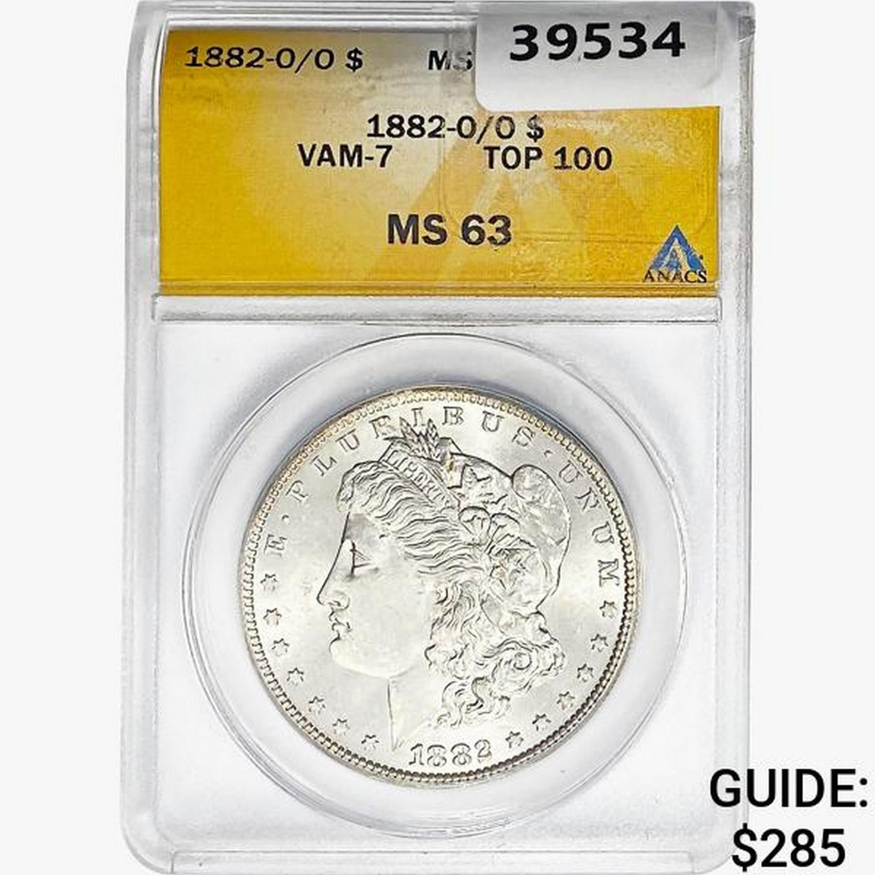1882-O/O Morgan Silver Dollar ANACS MS63 VAM-7