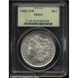 <TABLE cellSpacing=0 cellPadding=0 width="100%" bgColor=#000000 border=0><TBODY><TR><TD width="100%"><TABLE cellSpacing=1 cellPadding=3 width="100%" border=0><TBODY><TR><TD width="100%" bgColor=#79735c><FONT face=arial color=#ffffff size=3><B>Description</B> </FONT></TD></TR><TR><TD width="100%" bgColor=#ffffff><FONT face=arial size=2><B>1882-O/S $1 MS62 PCGS.</B></I> VAM-4. Top 100 Variety. The 'recessed' O/S overmintmark. A sharply struck piece with reasonable luster and clean surfaces for the grade. Struck from moderately rusted dies. </FONT></TD></TR></TBODY></TABLE></TD></TR></TBODY></TABLE><BR><A name=PricesRealized></A><TABLE cellSpacing=0 cellPadding=0 width="100%" bgColor=#000000 border=0><TBODY><TR><TD width="100%"><TABLE cellSpacing=1 cellPadding=3 width="100%" border=0><TBODY><TR><TD width="100%" bgColor=#79735c><A name=PR><FONT face=arial color=#ffffff size=3><B>Previous Prices from Heritage Auctions</B> </FONT></A></TD></TR><TR><TD bgColor=#f6f6ed><TABLE cellSpacing=0 cellPadding=0 width="100%" border=1><TBODY><TR><TD align=middle width="33%"><B>Date</B></TD><TD align=middle width="33%"><B>Service</B></TD><TD align=middle width="33%"><B>Price</B></TD></TR><TR bgColor=whitesmoke><TD width="33%"><B>11/17/2001</B></TD><TD width="33%">NGC</TD><TD width="33%">$224.25</TD></TR><TR bgColor=whitesmoke><TD width="33%"><B>09/25/2001</B></TD><TD width="33%">NGC</TD><TD width="33%">$301.00</TD></TR><TR bgColor=whitesmoke><TD width="33%"><B>09/25/2001</B></TD><TD width="33%">NGC</TD><TD width="33%">$255.00</TD></TR><TR bgColor=whitesmoke><TD width="33%"><B>03/02/2000</B></TD><TD width="33%">NGC</TD><TD width="33%">$316.25</TD></TR><TR bgColor=whitesmoke><TD width="33%"><B>01/08/1999</B></TD><TD width="33%">NGC</TD><TD width="33%">$385.25</TD></TR><TR bgColor=whitesmoke><TD width="33%"><B>02/08/2000</B></TD><TD width="33%">NGC</TD><TD width="33%">$300.00</TD></TR><TR bgColor=whitesmoke><TD width="33%"><B>02/01/2000</B></TD><TD width="33%">NGC</TD><TD width="33%">$250.00</TD></TR><TR bgColor=whitesmoke><TD width="33%"><B>04/24/1999</B></TD><TD width="33%">NGC</TD><TD width="33%">$352.00</TD></TR><TR bgColor=whitesmoke><TD width="33%"><B>04/14/2000</B></TD><TD width="33%">NGC</TD><TD width="33%">$230.00</TD></TR><TR bgColor=whitesmoke><TD width="33%"><B>08/12/2003</B></TD><TD width="33%">NGC</TD><TD width="33%">$356.50</TD></TR><TR bgColor=whitesmoke><TD width="33%"><B>09/30/2002</B></TD><TD width="33%">ANACS</TD><TD width="33%">$391.00</TD></TR><TR bgColor=whitesmoke><TD width="33%"><B>01/12/2002</B></TD><TD width="33%">ANACS</TD><TD width="33%">$287.50</TD></TR><TR bgColor=whitesmoke><TD width="33%"><B>11/15/2001</B></TD><TD width="33%">ANACS</TD><TD width="33%">$230.00</TD></TR><TR bgColor=whitesmoke><TD width="33%"><B>11/13/2001</B></TD><TD width="33%">ANACS</TD><TD width="33%">$230.00</TD></TR><TR bgColor=whitesmoke><TD width="33%"><B>10/06/2001</B></TD><TD width="33%">ANACS</TD><TD width="33%">$264.50</TD></TR><TR bgColor=whitesmoke><TD width="33%"><B>04/02/1993</B></TD><TD width="33%">ANACS</TD><TD width="33%">$231.00</TD></TR><TR bgColor=whitesmoke><TD width="33%"><B>01/10/1998</B></TD><TD width="33%">ANACS</TD><TD width="33%">$299.00</TD></TR><TR bgColor=whitesmoke><TD width="33%"><B>06/01/1996</B></TD><TD width="33%">ANACS</TD><TD width="33%">$209.00</TD></TR><TR bgColor=whitesmoke><TD width="33%"><B>03/01/2003</B></TD><TD width="33%">PCGS</TD><TD width="33%">$747.50</TD></TR><TR bgColor=whitesmoke><TD width="33%"><B>07/30/2002</B></TD><TD width="33%">PCGS</TD><TD width="33%">$379.50</TD></TR><TR bgColor=whitesmoke><TD width="33%"><B>06/08/2002</B></TD><TD width="33%">PCGS</TD><TD width="33%">$603.75</TD></TR><TR bgColor=whitesmoke><TD width="33%"><B>01/13/2002</B></TD><TD width="33%">PCGS</TD><TD width="33%">$235.75</TD></TR><TR bgColor=whitesmoke><TD width="33%"><B>01/12/2002</B></TD><TD width="33%">PCGS</TD><TD width="33%">$356.50</TD></TR><TR bgColor=whitesmoke><TD width="33%"><B>10/07/2001</B></TD><TD width="33%">PCGS</TD><TD width="33%">$270.25</TD></TR><TR bgColor=whitesmoke><TD width="33%"><B>08/05/2001</B></TD><TD width="33%">PCGS</TD><TD width="33%">$391.00</TD></TR><TR bgColor=whitesmoke><TD width="33%"><B>08/08/1998</B></TD><TD width="33%">PCGS</TD><TD width="33%">$330.00</TD></TR><TR bgColor=whitesmoke><TD width="33%"><B>06/19/2001</B></TD><TD width="33%">PCGS</TD><TD width="33%">$360.00</TD></TR><TR bgColor=whitesmoke><TD width="33%"><B>01/05/1994</B></TD><TD width="33%">PCGS</TD><TD width="33%">$275.00</TD></TR><TR bgColor=whitesmoke><TD width="33%"><B>03/03/2003</B></TD><TD width="33%">PCGS</TD><TD width="33%">$373.75</TD></TR><TR bgColor=whitesmoke><TD width="33%"><B>07/29/2003</B></TD><TD width="33%">PCGS</TD><TD width="33%">$402.50</TD></TR><TR bgColor=whitesmoke><TD width="33%"><B>06/10/2003</B></TD><TD width="33%">PCGS</TD><TD width="33%">$460.00</TD></TR><TR bgColor=whitesmoke><TD width="33%"><B>09/24/2002</B></TD><TD width="33%">NGC</TD><TD width="33%">$87.40</TD></TR><TR bgColor=whitesmoke><TD width="33%"><B>06/04/2002</B></TD><TD width="33%">NGC</TD><TD width="33%">$402.50</TD></TR><TR bgColor=whitesmoke><TD width="33%"><B>08/06/2003</B></TD><TD width="33%">ANACS</TD><TD width="33%">$346.15</TD></TR><TR bgColor=whitesmoke><TD width="33%"><B>02/11/2003</B></TD><TD width="33%">ANACS</TD><TD width="33%">$207.00</TD></TR><TR bgColor=whitesmoke><TD width="33%"><B>02/11/2003</B></TD><TD width="33%">ANACS</TD><TD width="33%">$189.75</TD></TR></TBODY></TABLE></TD></TR><TR><TD bgColor=#ffffff><FONT face=arial size=1 ?>PLEASE NOTE: All prices realized reflect the final hammer price PLUS the buyer's premium in auctions that charge a buyer's premium. Each item has a notation at the top of the listing indicating whether that lot included a buyer's premium. Example: A item that sells with a final hammer price of $100 and a 20% buyer's premium will display with a price realized of $120. All information listed is intended to be as accurate as possible, but errors are pos
