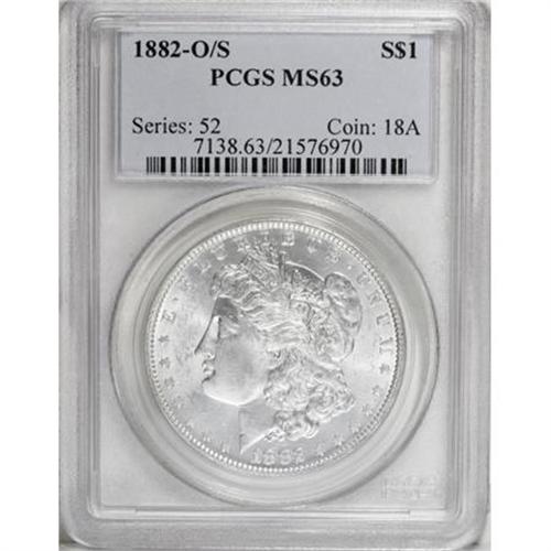 <B>1882-O/S $1 MS63 PCGS.</B></I> VAM-4. A Top 100 Variety. The "Recessed" overmintmark VAM. Lustrous and brilliant with a clean reverse and a few inconspicuous grazes on the left obverse. Struck from rusted dies.<BR><BR><B>Coin Engraver:</B> George T. Morgan<BR><BR><b>Shipping:</b> Coins & Currency (<a target="_blank" href="http://www.heritageauctions.com/common/shipping.php">view shipping information</a>)