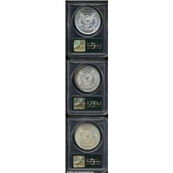 <B>1882-O<S$1> MS64 PCGS,</B></I> well struck, with bright, lustrous surfaces; <B>1888-O MS64 PCGS,</B></I> nicely struck with a hint of color at the peripheries; and an <B>1890-O MS64 PCGS,</B></I> just a hint of light color on minimally abraded surfaces. 3 Coins <BR><BR><B>Important notice:</B> Heritage usually auctions material at the rate of 200-250 lots per hour. On some occasions eBay Live bid software or the Internet may not be able to keep up with the pace of the auction. We recommend placing a realistic absentee bid now as insurance to avoid disappointment. Occasionally the auctioneer may eliminate or reject an eBay Live bid, and the auctioneer may also reopen a lot after the close of the eBay live bidding (usually because we missed an audience bid), and may reject your bid even if it shows you as the winning bidder. By bidding via eBay Live, you agree that Heritage may award the lot to another bidder at its sole discretion under the circumstances described above or any other reasonable circumstances. Since eBay bids are not shown to us until we open the lot on the floor, we treat those bids just like floor bids. In most cases the floor responds before the eBay bid is presented to us, due to Internet lag time, so for consistency we have made it a policy that floor bids are always considered first over tie eBay live bids. Also please note that all Heritage lots purchased through eBay Live carry a 20% Buyer's Premium. Please make sure you read the Terms and Conditions before you bid.