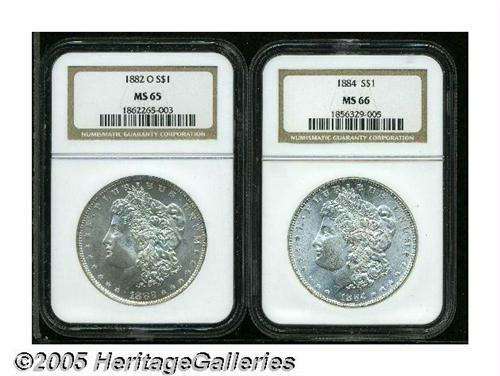 1882-O S$1 MS65 NGC, and an 1884 MS66 NGC, bot 18