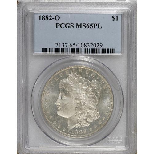 <B>1882-O S$1 MS65 Prooflike PCGS.</B></I> This lightly toned and suitably reflective Gem is pleasantly preserved and attentively struck. The 1882-O is a common date in typical Mint State grades, but high grade Prooflike pieces are undeniably scarce. Population: 22 in 65 Prooflike, 1 finer (1/07).<BR><BR><b>Shipping:</b> Coins & Currency (<a target="_blank" href="http://www.heritageauctions.com/common/shipping.php">view shipping information</a>)
