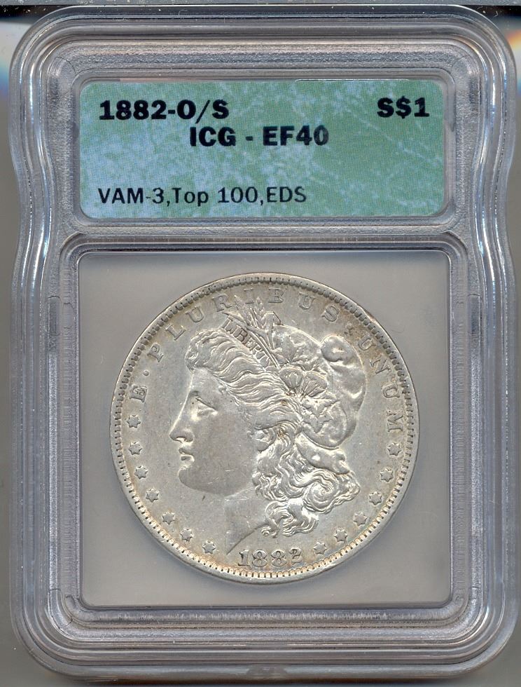 One 1882-O/S $1 Morgan Silver Dollar Coin ICG EF40.