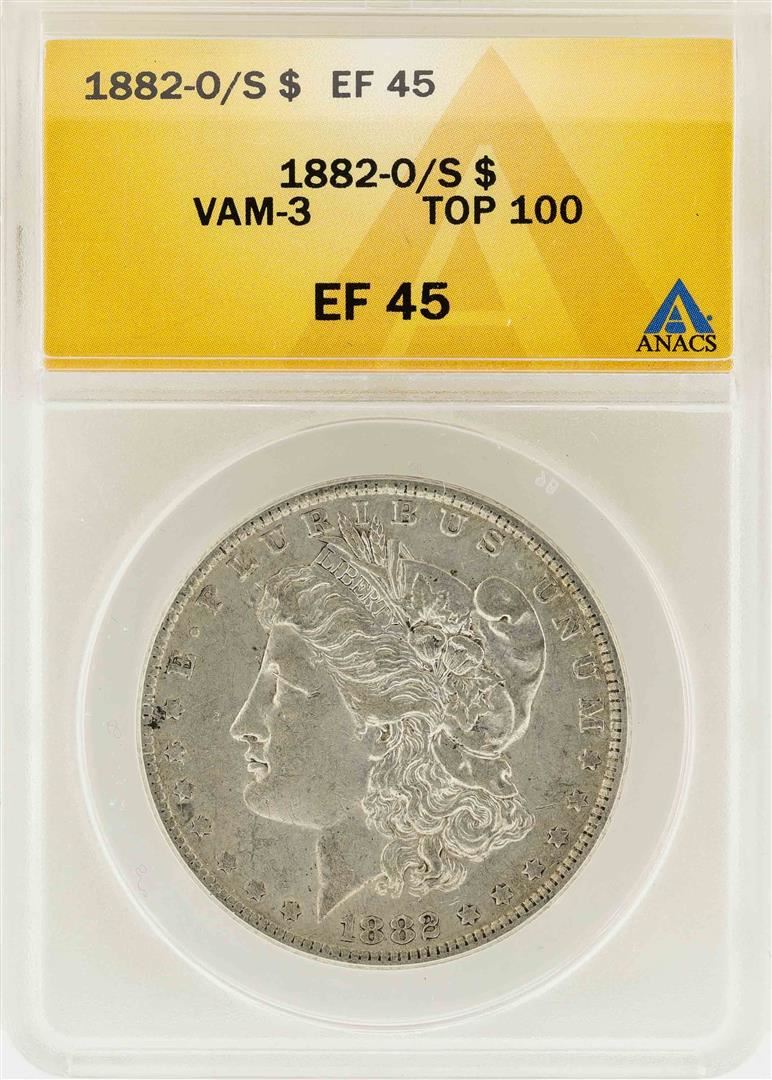 One 1882-O/S $1 Morgan Silver Dollar VAM-3 Top 100 ANACS XF45. ANACS Certified.