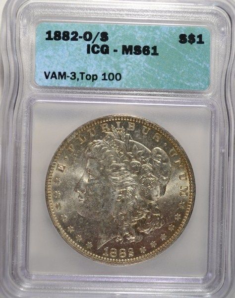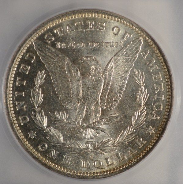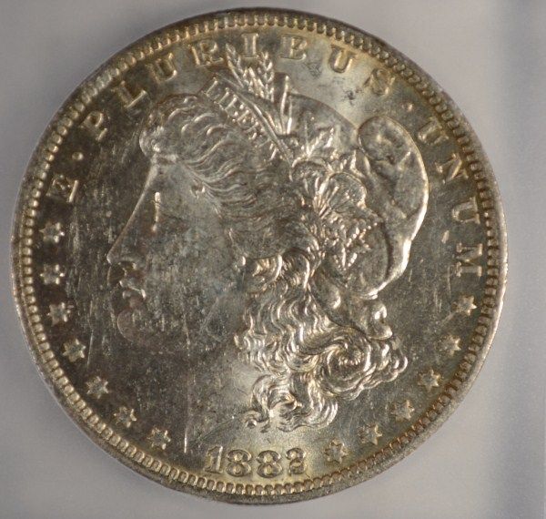 A VERY ATTRACTIVE OVERDATE MORGAN SILVER DOLLAR, ESTIMATE, $250.00 TO $275.00