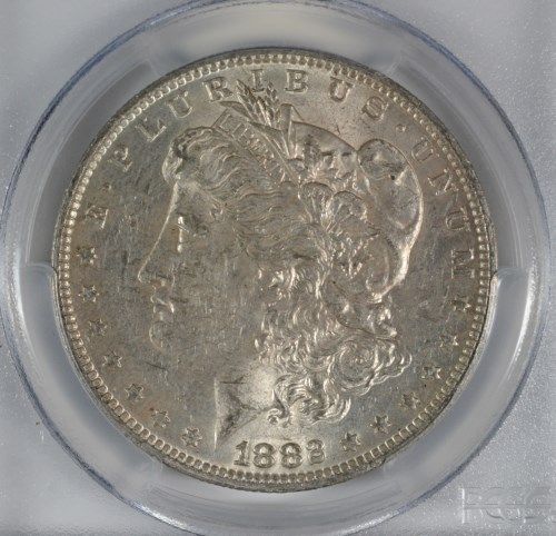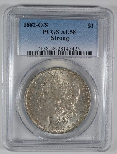 1882-O/S MORGAN SILVER DOLLAR, PCGS AU-58 NICE!!