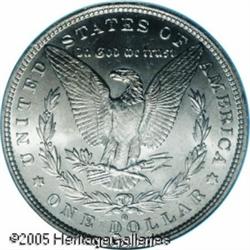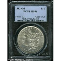 <B>1882-O/S<img border='0' src='http://www.heritagecoins.com/images/star.gif' width=10 height=10>$1 MS64 PCGS.</B></I> VAM-4. A Top 100 Variety. The 'recessed' variant of this popular overmintmarked issue. A satiny, exquisitely struck, and nearly brilliant near-Gem. Both sides are exceptionally clean for the grade, the cheek is particularly smooth. The major devices exhibit die rust, as made and as usual for the VAM.<BR><I>From The Banks Collection.</B></I> Lot:10090