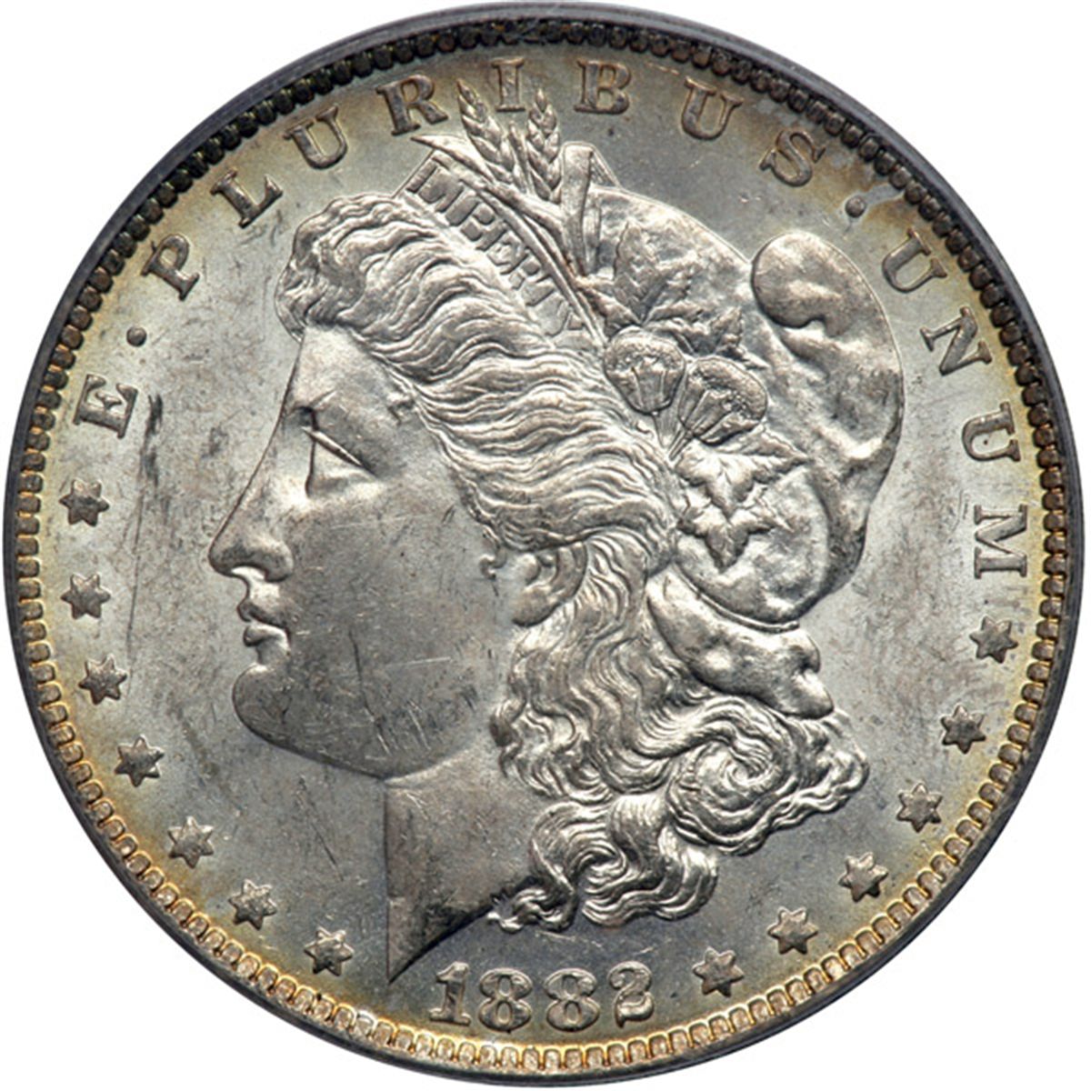 1882-O/S Morgan Dollar. PCGS graded MS-62 Strong. Frosty and lightly toned (PCGS # 7138) .
