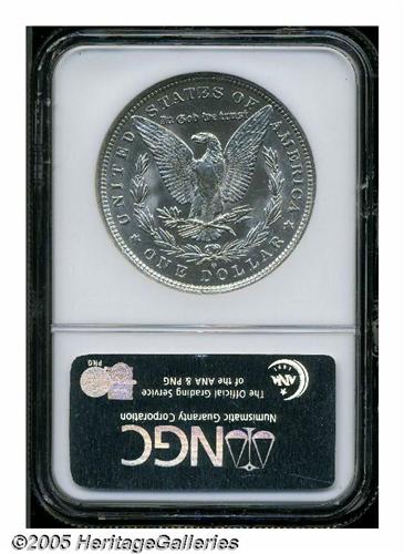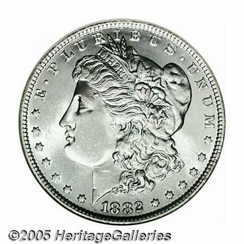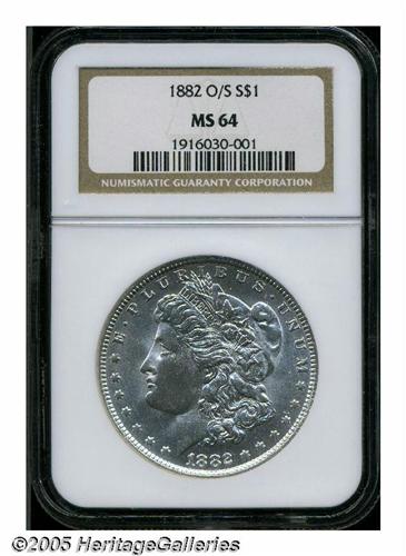 <B>1882-O/S<S$1> MS64 NGC.</B></I> VAM-4. Top 100 Variety. Three overmintmark VAMs are known for this issue, with this imposing near-Gem from the "Recessed O over S" reverse. The central curve of an S rests within the lower half of the inner loop of the primary O mintmark. Lustrous with a completely white, untoned appearance and relatively clean surfaces. Struck from slightly rusted dies.