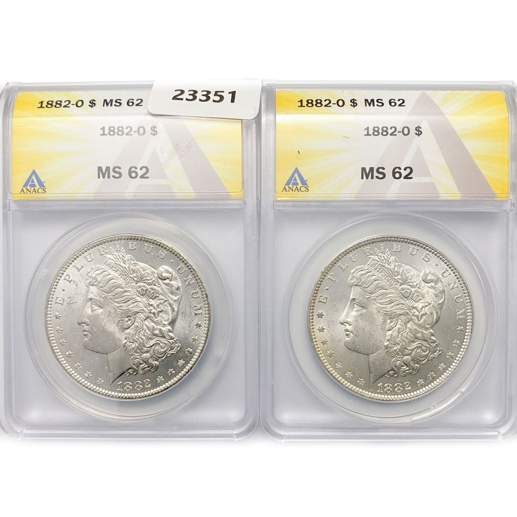 1882-O Set (2) Morgan Silver Dollar ANACS MS62