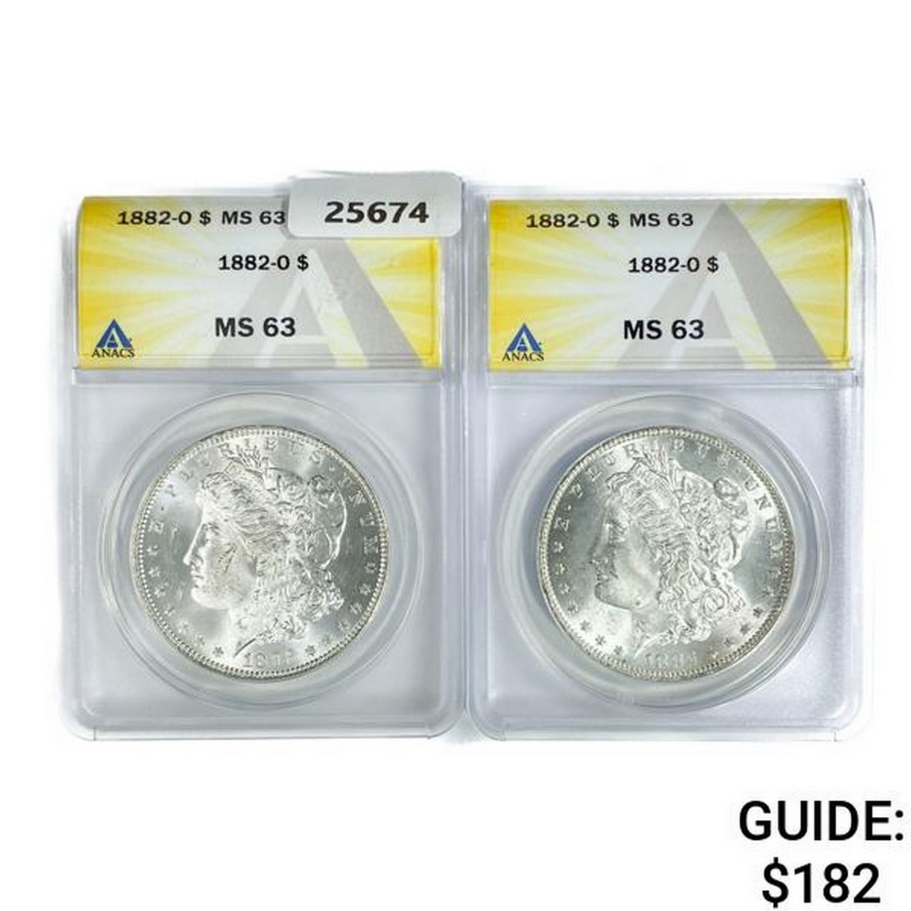 1882-O Set (2) Morgan Silver Dollar ANACS MS63